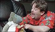 [9] The film was also given away on DVD with special packs of PG Tips tea. In Monkey - Hero of Our Time, Monkey writes that his "parents owned a toy shop", however this was forced into closure in '1982' He said "[a]s my parents were clearing away and throwing out what was left of the stock, my mother came across me, stuck behind a pile of empty cardboard boxes" and "[s]he took me home and painstakingly restored me back to my former glory - cleaning me, re-stuffing me and sewing me up. Her love for me was so great that I amazingly found myself able to move and speak." Soon afterwards he claimed that his first words to her were "Put the kettle on, eh Mum? Monkey is sometimes portrayed as being quite cowardly; for example his refusal to take responsibility for dropping a ceramic bowl dating back to 3000 BC, despite being filmed doing so.[11] He is also prone to miserliness, having admitted that he re-uses discarded plasters he finds in swimming pools.[11] Monkey hoards both his and Al's wages, deliberately neglecting to inform the naive Al of the fact that they are in fact paid for their work, stating "I don't bother Al with details" and that his money is "safely invested in a portfolio of bananas".