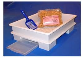 The top portion of the box holds natural safflower seed litter that allows urine to pass through the slotted floor into a covered urine collection reservoir below. Solids can be easily scooped from the litter pellets and liquids are disposed of by emptying the reservoir. By separating solid and liquid waste and containing urine in a covered reservoir, the Smart Cat Box dramatically reduces unwanted odors.