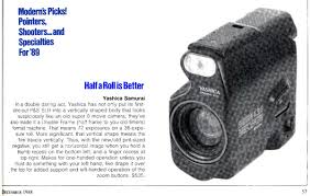 1 - 22 of 22 ads for "yashica" within Non Digital CamerasSony point and shoot digital still camera DSC-W800 has 20.1 megapixel super HAD CCD image sensor, 5x optical zoom with...Explore Old Camera, Camera Hunt, and more!Camera PhotographyCamerasClassicPhotographyFor TheThe O'jaysJDM von Weinberg , Jun 21, 2011; 01:41 a.m.Yashica Samurai X3.0 (1987 or 1988) Yashima Seiki K.K. 八洲精機株式会社Kadlubek Nr. YAS1970I don't know how I got here exactly, but for some odd reason I got temporarily attracted to the 'swoopy' and flashy styling of the early "bridge cameras". This post continues this minor obsession, one which costs little to indulge these days./wiki/Yashica ) even claim that the Yashica Samurai x3.0 of 1988 was the "first bridge camera" ( "1988 erschien mit der Halbformatkamera Yashica Samurai X3.0 die erste Bridgekamera") . Modern Photography "Picks" from December of 1988. JDM von Weinberg , Jun 21, 2011; However some list the Samurai as being from 1987 instead of 1988, although US introduction was definitely late 1988 and early 1989.