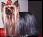 The ears are v-shaped, set high, and carried erect. The body is compact with a level back. The Yorkshire terrier's most notable feature is its coat, which is long, fine and straight. The hair is a steel blue color on the body and tail, and elsewhere it is tan. The tail is usually docked to half its natural length. Long hair on the top of the head is another characteristic feature and is often tied up with a ribbon, giving the dog a jaunty appearance. Yorkshire Terriers live about 12 to 15 years. The Yorkshire terrier's small size belies its true personality, which is energetic, feisty — and domineering. Yorkies are affectionate, but they also want lots of attention; the breed is a good choice for someone who wants to dote on a dog. Yorkshire terriers make excellent watchdogs. But they can be snappy toward other children if not treated respectfully or gently. Some might also be aggressive toward other small animals, but some Yorkies live quite peacefully with other dogs and even cats.